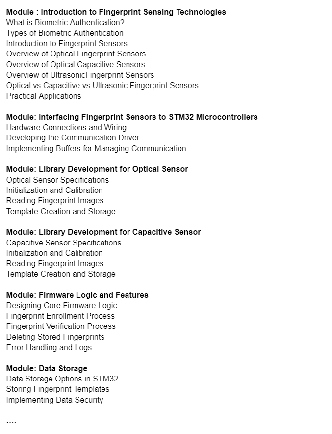 STM32 Interfacing: Master the wiring and driver development necessary to interface fingerprint sensors with STM32 microcontrollers.